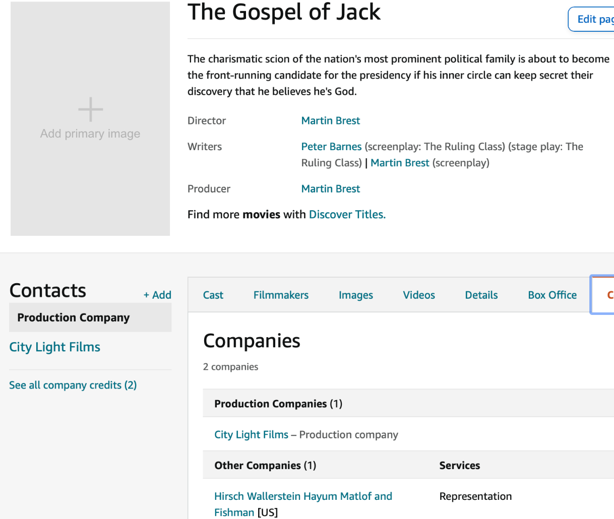 As it turns out, Brest now has a new film on IMDb Pro titled The Gospel of Jack. The logline reads: “The charismatic scion of the nation's most prominent political family is about to become the front-running candidate for the presidency if his inner circle can keep secret their discovery that he believes he's God.” The script is based on the play and feature film adaptation of The Ruling Class by Peter Barnes. Other details are scant on IMDb - but Brest’s production company and legal representation are listed as producers on the film, and January 18, 2023, is listed as a script date.