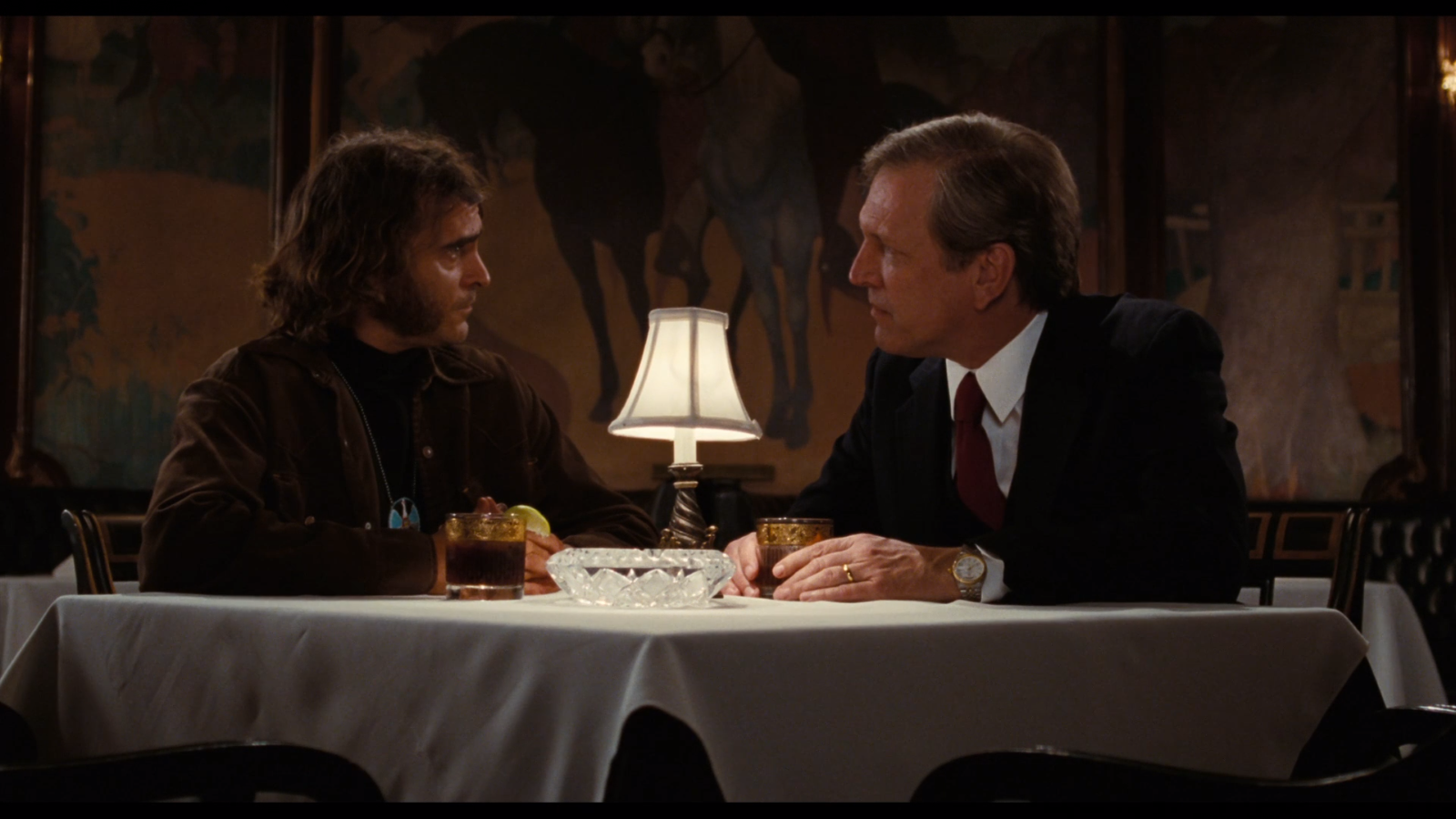 We come now to the point in which Doc finally meets his maker, in a manner of speaking—the crown prince of Palos Verdes, one Crocker Fenway. A wealthy elitist who lives a life of unusually high density and incoherence, raping and pillaging the American Fate for his own nefarious ends, Crocker is as close as we get to a Big Bad in Inherent Vice, and he’s the man who paid Doc his first buck on his first case… So what’s it mean to meet your god, and find out he’s a devil? Well… gosh…