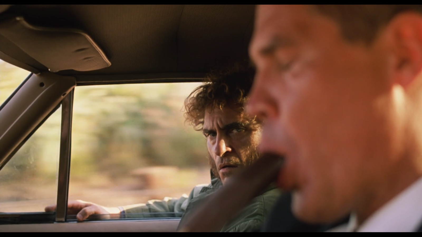 It’s clear Pynchon has bananas on his brain, but perhaps not nearly as much as the bruised and spoiled synapses of Lt. Detective Christian F. “Bigfoot” Bjornsen, whose appetite for the yellow crescents sneaks nightward across the borderline of simple hunger and into the lawless landscape of horny-melancholy obsession…which, when you think about it, isn’t that—a preoccupation both depressed and thirsty—the mood of Inherent Vice as a whole? Further, after the wistful Big Sleep-isms of the seductive opening scene, and the twisty-turny plot mechanics of Doc pinballing from Pipeline Pizza to Aunt Reet’s phone line to brunch with Denis to learning the another lesson in the long, sad history of LA land use before taking a ball bat to head after being on the losing end of Jade’s Pussy-Eater’s Special, don’t we deserve a break with the funniest stretch of film in all of Inherent Vice?