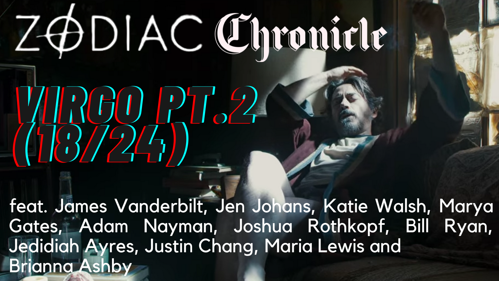 Welcome to Zodiac Chronicle. A 24-part investigation into David Fincher's 2007 genre-altering masterpiece Zodiac. It is adapted from Robert Graysmith's novel by screenwriter James Vanderbilt. The film, of course, stars an incredible ensemble cast led by Jake Gyllenhaal, Robert Downey Jr, Anthony Edwards and Mark Ruffalo. I am your host, Blake Howard. This is the eighteenth episode of Zodiac: Chronicle – Virgo Pt. 2. Today's introduction was a film critic and host of the terrific Watch With Jen podcast, my friend Jen Johans.